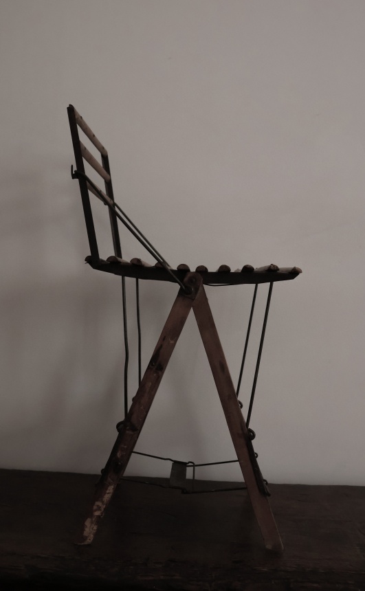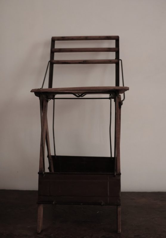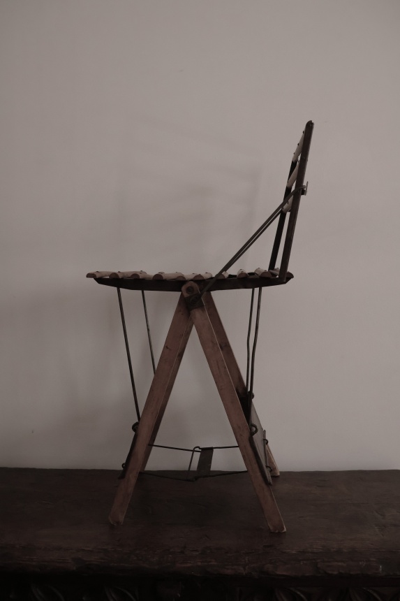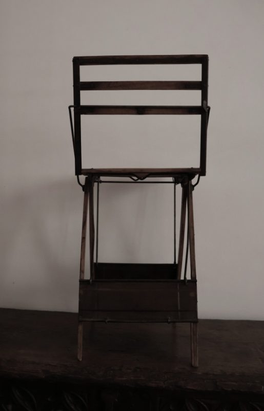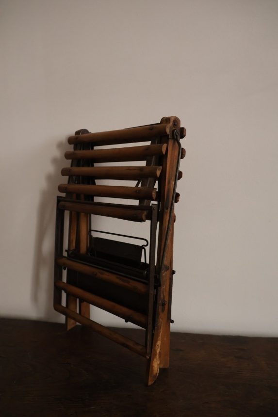 ●折り畳み出来る椅子 ●19世紀末 折り畳めむ事が出来る、椅子 魚釣り、或いは絵を描く時に使われた椅子である 横から見た様子、珍しい作りである 後ろ側から 反対側の横から 折り畳んでみた様子 ◆とてもコンパクトに折り畳めるので何処ででも使えます ◆時 代;19世紀末 ◆サイズ;H-41(座面迄) /63(背もたれ迄) W-26.5 奥行-31.5 販売済