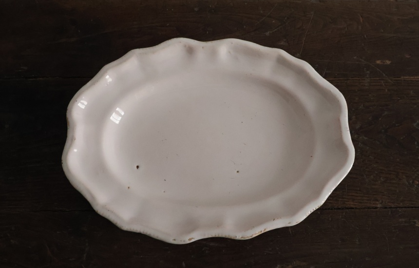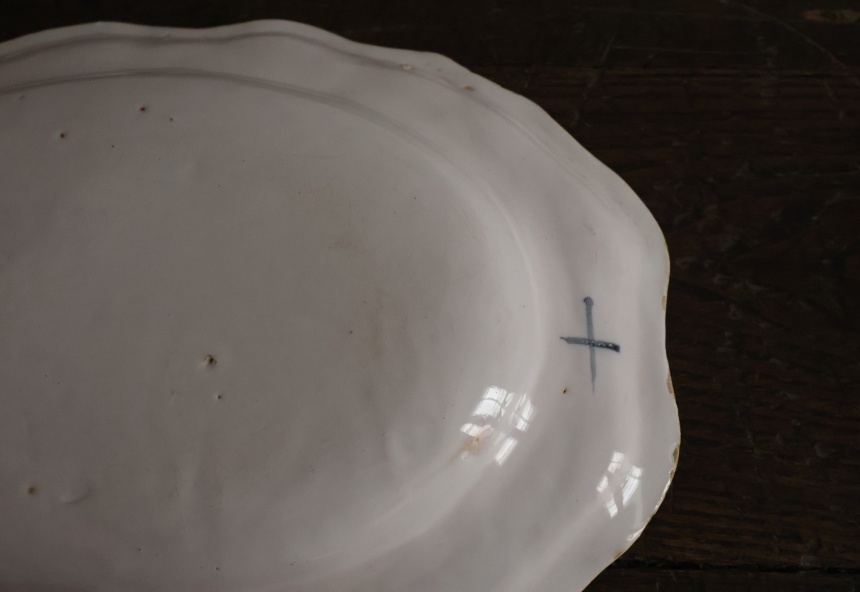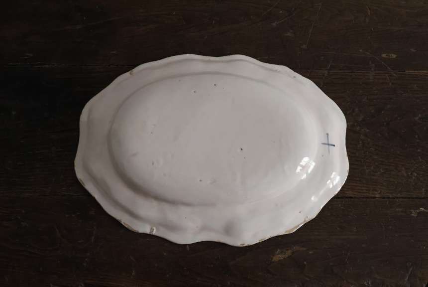 AV25h-013 ●楕円の白皿 ●19世紀末 ムスティエの楕円大皿 横から見た様子 別な角度から</p 裏側から見た様子 Moustier / ムスティエ焼きを表す✖の印がある ◆時にはザバッと料理を大皿に盛ってみるのも気持ちが良い いかがでしょうか? ◆サイズ;W-38.5 L-28 H-4.5 AV25h-014 ¥44,000この商品を購入する