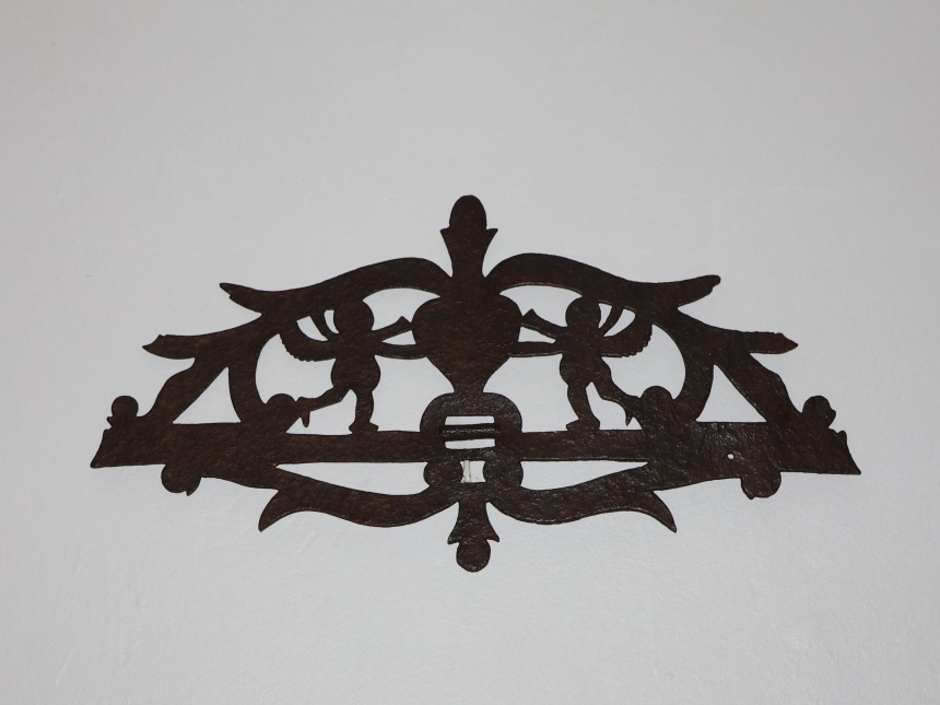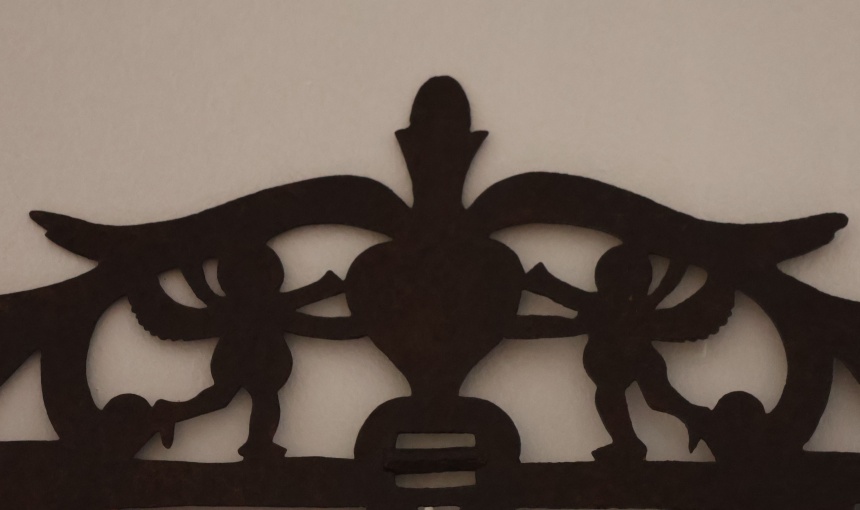 AV25h-023 ●天使の飾り ●19世紀末 影絵のよう鉄の飾り ◆ラッパを吹く天使が二人、窓辺に、棚に素敵に飾れます ◆サイズ;L-21cm W-39.5cm AV25h-023 ¥22,000この商品を購入する