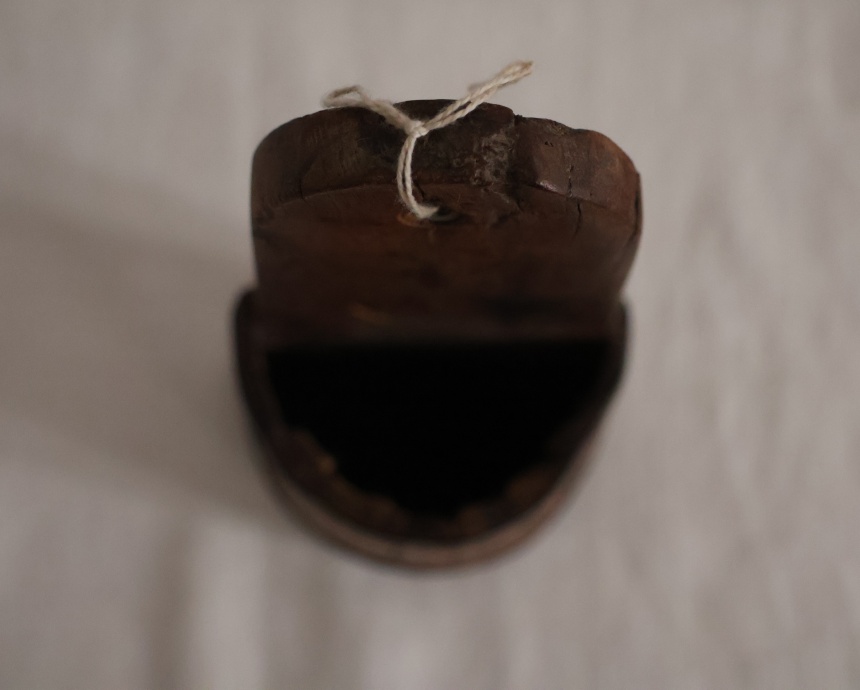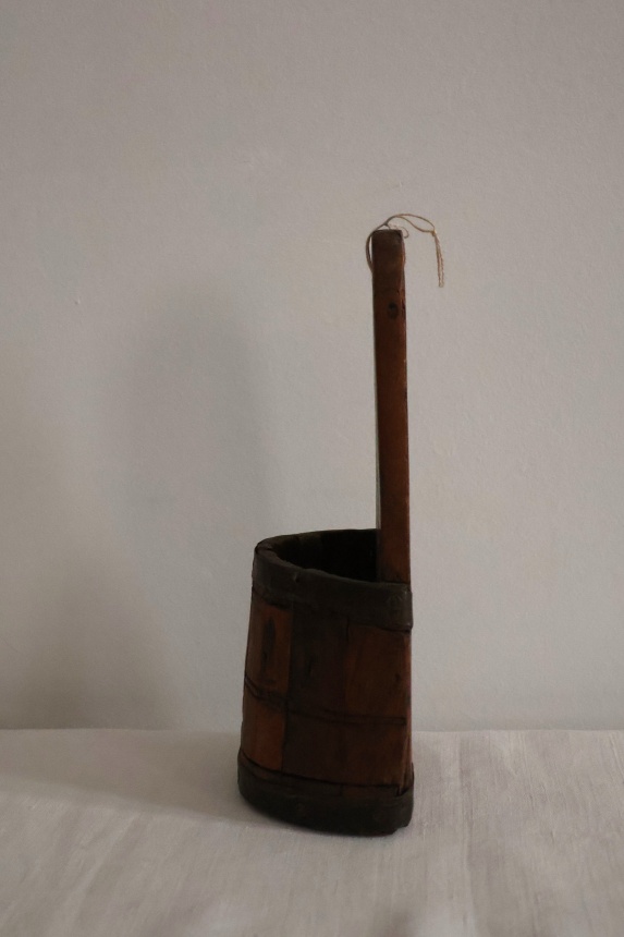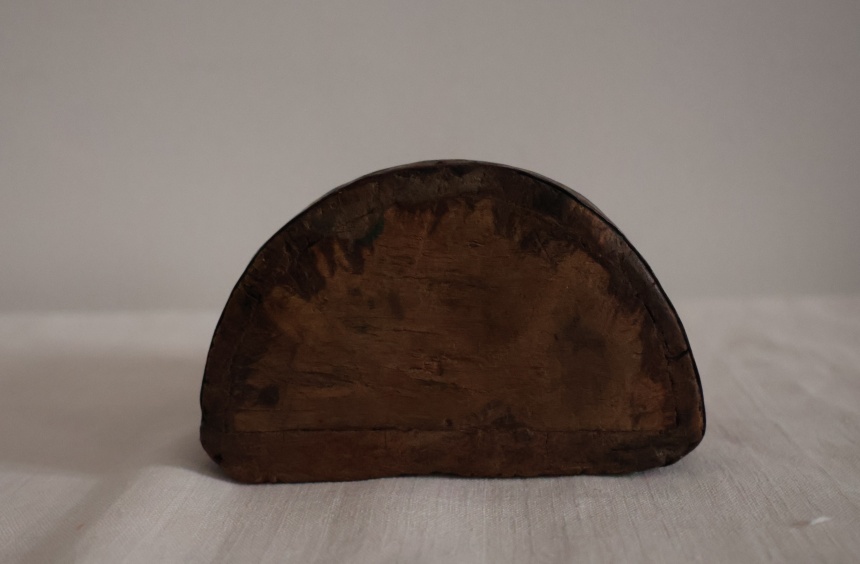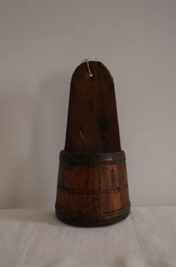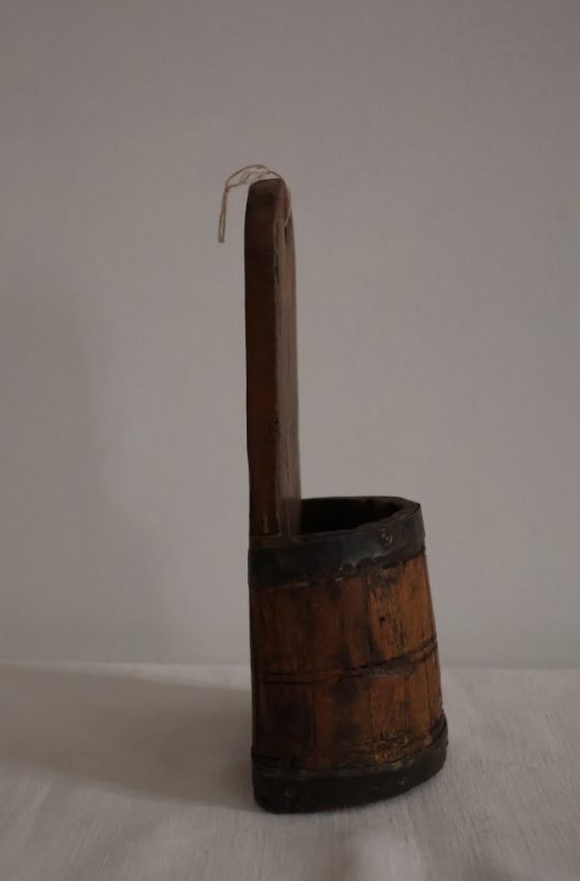AV25h-063 ●カトラリー入れ ●19世紀末 洗ったカトラリーを入れておく品 横から見た様子、半円形の作りが良い 古き手作り感の味が、鉄のタガに出ている 使われた板の厚みを感じる 上からの状態 底の状態 ◆花を入れて壁に掛けても良し、置いてペン立てにしても良しの品 ◆サイズ; W-上:6cm 中央:10cm 底:12cm 奥行-6cm H-10.5cm:23.5cm AV25h-063 ¥14,300この商品を購入する